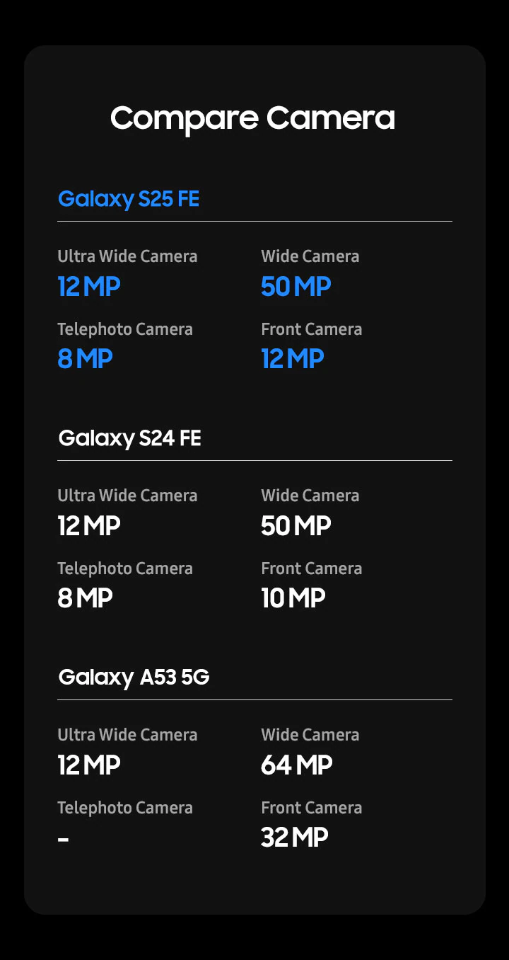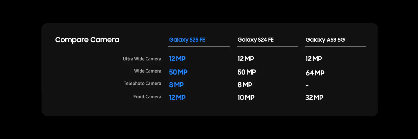 El Galaxy S25 FE cuenta con una cámara frontal de 12 MP que captura selfies enriquecidas en detalles y colores vibrantes, con un 20 % más de resolución que el Galaxy S24 FE, lo que logra tonos realistas y texturas más finas en cada toma.16