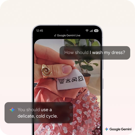 Hablá libre y naturalmente con Gemini Live para obtener información en tiempo real. Compartí tus momentos a través de la cámara o subiendo imágenes, y obtené ayuda con tareas como descifrar las etiquetas de cuidado de tu ropa favorita.